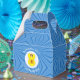 Personalized gable favor box showing an angel wearing the Scot Lion Rampant Flag for Hanukkah. The angel flies in a white circle of squiggly squares. Blue squiggly squares create the background. Above reads HANUKKAH 20??. You can change it all or just add the year you want. Below is a place for a guest of honors name or the occasion. Party item or gift wrapping item.