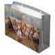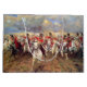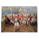 Detta mönster är ett målande av Elizabeth Thompson (1846-1933), som visar att Royalet Scots Grays, en brittisk kavalleriregim som anklagade vid sidan av den brittiska tunga kavalleriet vid slaget vid Waterloo 1815, har börjat anklagas. Det är en romantiserad bild, eftersom det verkar som om skotska gråter aldrig i själva verket laddas upp i en gallop och väljer att gå framåt i stället med en snabb promenad. Striden var dock dödlig: omkring 200 manar och 200 hästar av Royalet Scots Grays dödades eller skadades under den anklagelse som visas här. Under det första Världskriget använde både britterna och tyskarna denna evokativa bild i sitt propagandamaterial, i avsikt att öka sina styrkors moral.