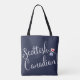Scottish Canadian Entwining Hearts Matkasse. Oavsett om du har skotska härdar eller kom från Skottland, eller om du och din andra hälften är skotska och kanadensiska! Detta är en skript typsnittsdesign, med två insinnade hjärtan med kanadensiskt och skotskt flaggor, och texten: Scottish Canadian.