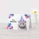 Öka glädjen på en speciell dag med ett skotskt veckors födelsedagskort för katt, där en underbar grått katt med en födelsedagsfest hatt och omgiven av ballonger kastar strålkastarljuset i en pulserande vattenfärgad illustration. Kortet fångar kärnan hos en katt som vet hur man firar i stil.