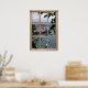 Poster som ser ut som ett fönster - fiskebåtar Denna fönsterscen visar en hamn i Skottland. Fiskefartygen ligger förtöjda i lugn vatten i denna traditionella hamn som data går tillbaka till 1600-talet. Ett träfönster av rustiskt ramar är den lugna scenen, där löven träd skapar en attraktiv förgrund. Bortom det kan man blunda för det öppna havet under ett molt himlar.
