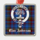 Skotsk Klan Andersson vapensköld-bricka på tartanbakgrund