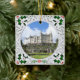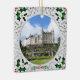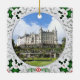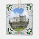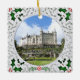 Skär ditt skotska sutherlandarv med en julklapp som firar ditt familjehem nära Golspie, på Skottlands öster kusten, Förenade kungariket. Ett underbart, runt foto av Dunrobin Castle, som har varit säte för Sutherland Highland Klan i århundraden, är framtaget av en kvadratisk, texturerad vit, hammeriserad keramisk prydnadsprodukt som dekoreras med grönt holly löv och röda bär.