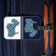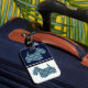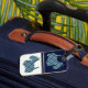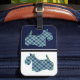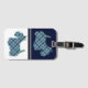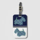 Det här har en två bilder bagagemärke som ger en blå och grönt tand som heter Scottish Terrier. Den skotska hund ansikte går i en riktning uppifrån och går i motsatt riktning mot grund. Den ena bilden är på mörk blått bakgrund och den andra på vit bakgrund. Tunt mörk blått och vitt rand skiljer de två halvorna åt. Unik, attraktiv och perfekt för alla som kärlek ett skotskt land.