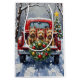 Add dignified, spunky charm to your holiday season with this classic Scottish Terrier Christmas design! This festive scene features three handsome and whiskered Scottish Terriers (Scotties) sitting attentively in the back of a classic red pickup truck, nestled in a picturesque snowy winter forest. The vintage truck is adorned with a vibrant Christmas wreath, twinkling with red and gold ornaments and warm, glowing lights. Soft snowflakes gently fall, enhancing the winter wonderland effect. A decorated Christmas tree in the background completes this heartwarming picture, making it an ideal Christmas gift for any Scottish Terrier owner, dog lover, or admirer of festive and beloved dog breeds. This design perfectly captures the joyful spirit of the holidays.
