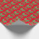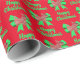 Scottish Terrier / Scottie hund silhouette i med röd jul papper abstrakt mönster och grönt buggar på röd bakgrund. Byt ut julen i Lycklig mot vad du vill. Perfekt söt Julafton Scotty hund papper för gåvor till husdjur.