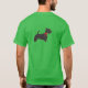 Scottish Terrier skisserade i rött med texten "God jul!" och en vinterbakgrund.