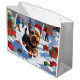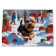 En glad skotsk Terrier springa glatt genom snövinteckan och med en glad röd julhatt. Denna charmerande utformning belyser rasens särskilda silhuett, jackar med torr och andlig karaktär samtidigt som den fångar julhelgens värme och glädje. En härlig vinter-fullt av festlig cheer.
