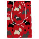 Cute Black, grått och väve Scottie hundar med ben, tassavtryck och hund med röd bakgrund.