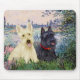 Genom Seine av Claude Monet (1881), som nu anpassats till att omfatta två skotska terriers, kan en pjäs med varierande pastellhushåll ge upphov till en fredlig scen.