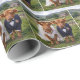 Highland cows wearing a stunning white wedding gown and classic tuxedo in a picturesque country pasture