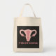 En tote-väska med ett budskap till Förenade Stater högsta domstol och vältning av Roe mot Wade. Rosa uterus-grafik med "f*ck av SCOTUS"-text