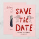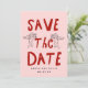 A playful and modern save the date card featuring your own photo and a customizable QR code.