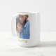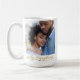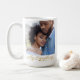 The Script Across Us mug features a centered full-width photo with a flowing cursive phrase My Everything overlaying the bottom. A delicate gold line with a heart accent adds warmth. The clean white base and modern layout create a sleek design that feels deeply heartfelt.