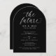 Set the tone for a chic celebration with these modern black engagement party invitations featuring elegant white script typography. The arch-shaped design and minimalist layout create a stylish, contemporary look—perfect for hosting an engaged couple’s elegant engagement party in timeless black and white style.