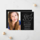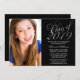 En elegant Black and silver-skriptteckensnittsklass för 2019-studentfestens meddelande. Perfekt för en högre studenten, högskoleexamen eller studentfest! Utformningar är platta tryckta illustrationer/grafik - INTE FAKTISK SILVER FOIL. Om du vill ändra storlek på och placera fotot klickar du på knappen "ANPASSA".