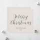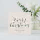 Den här snyggten och den moderna eleganten med julkort har elegant med det moderna kalligrafiskriptet mörk grönt med krämbeige bakgrund.