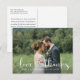 Detta fotokort med blödande kanter kombinerar den charmiga frasen "kärlek tack" i flödande vit script med en söt hjärtaccent, vilket skapar en varm och modern tacksamhets souvenir. Ert favoritbröllopsfoto fyller hela framsidan medan de anpassningsbara namnen och datum visas nedan i ren typografi. Ett vackert sätt att uttrycka tacksamhet och dela en kär minne med familj och vänner.