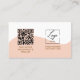 Modern style pink arched photo background with script typography with logo , Qr code social handle, email, phone number and website option . Perfect elegant minimalist card for nail tech, makeup artist, hair stylist, Coaches & consultants.