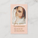Modern style pink arched photo background with script typography with logo , Qr code social handle, email, phone number and website option . Perfect elegant minimalist card for nail tech, makeup artist, hair stylist, Coaches & consultants.