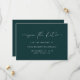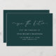 Dessa enkla och stilrena mörkt grönaktiga teal-bröllop 'spara datum'-kort har modern vit handskriven text med lekfulla hjärtan som en del av typografin. Lägg till din bröllopsinformation för att fullborda denna eleganta, minimalistiska stil.