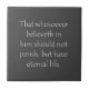 John 3 15. Förtroende med det här inspirerande bibelcitatet eller skripturcitatet för att hitta kristens läkningsstyrka, uppmuntran och kraftfull upplysning för att övervinna hårda tider. Visa och bära vackra religiösor om kärlek, hopp, fred, glädje och lycka att trösta sig själv och plantera ett frö av tro på er anda eller använda som en gåva till dem ni kärlek. Amen.