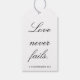 “Love never fails.” — 1 CORINTHIANS 13:8. Create beautiful tags with faith-based sayings about love for your wedding or bridal shower centerpieces.