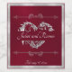 Denna design har en vinröd bakgrund med silverband som ram, silverrullar och ett silvermonogram i hjärta med brudparets namn och datum för evenemanget i elegant skrivstil. Finns även med olika bakgrundsfärger för att matcha ert bröllopstema. (Bandet är simulerat i illustrationen). Designad för att samordna med "Romantic Scroll Hearts & Calligraphy" brölloppskollektion. För att ändra detaljer, klicka på «Anpassa». För att flytta texten eller ändra textstorlek, teckensnitt eller färg, klicka på «Klicka för ytterligare anpassning»