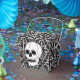 Det här klassiska vita, traditionella skallen ställs mot en viktoriansk gotisk, svart och vit rulla från min ursprungliga teckning. Underbar för Halloween eller när som helst för att visa din elegant goth stil. Se min butikskonst efter MAR för matchning av produkter med den här designen.