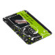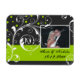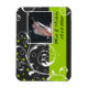 Scrollwork löv black, grönt flourish bröllop spara datum Flexibel magnet visar vit rulla blad och grönt punkter på svart bakgrund.
