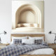 Eine skulpturale Nische mit konzentrischen Bögen und einer organisch geformten Sitzfläche. Die monochrome Farbwelt und die präzise Geometrie machen dieses Motiv zu einem eleganten Blickfang für moderne Räume.