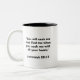 En härlig kaffekopp som visar musikbandlogotypen på en sida och den Jeremiah 29:13 på annan