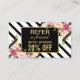 Vill du visa dina klienter att du uppskattar deras lojalitet? Dessa vackra hänskjutningskort för Rosa Blommigt Rand är det perfekt sättet att tacka dem för deras arbete och uppmuntra dem att hänvisa sina vänner och sin familj. Med en fantastisk utformning av blommigten och elegant svart och vitt rand är det säkert att dessa kort kommer att fånga deras ögon. Anpassa dem med din salon namn och kontakta informationen med Zazzles designade verktyg och börja dela ut dem till dina värderade kunder i dag!