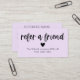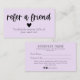 Modern lila- och svarta referenskort som kan vara personlig med din affärsinformation på baksidan.