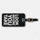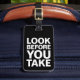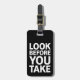 Svart och vit "Titta innan du tar", anpassningsbara bagagemärke.