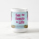 Härlig fjärilslandning på en thistle. Enkel en inskriven dagstidningpåminnelse, som läser, "ser skönheten i liv.",