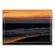 Två barn står vid kant utanför surfan för att se Sol stiga upp över havet.