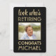 Se vem som går i pension! kolleger från inbjudan, medarbetare, familjemedlemmar och vänner till ett speciellt firande i pension med inbjudningar till elegant anpassningsbar-fotopartyn. Bild och alla formuleringar i den här mallen är enkla att anpassa. (IMAGE PLACEMENT TIP: Ett enkelt sätt att placera ett foto exakt på vilket sätt du vill är att lägga upp det i skörd innan du laddar upp det på Zazzles webbplats.) Den moderna svarta och guld-designen har ett foto av den pensionerade, faux guld-folie, snyggt-manusgrafi och klassisk vintage-konsthändelse-typografi. Observera att guld är tryckt på färg, inte metallfolie. Den könsneutrala utformningen är också lämplig för antingen en man eller en kvinna. Skål, Grattisar och Lycklig Pension!