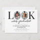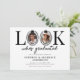 Fira två milstolpar i modern stil med denna roliga gemensamma examensfest-inbjudan. Med en ren vit bakgrund och den roliga frasen ”titta vem som tog examen”, använder designen på ett smart sätt ”O”-bokstäverna som ramar för fotografier, var och en accentuerad med en examenshatt för en lekfull men ändå elegant touch – perfekt för att visa upp båda examinander.