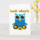 Uggla formar baby i första födelsedag T-shirts, karosseri, mugg, magneter, kort och mer med text som lyder "Se vem som är 1"!