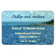 Blues och akvarier från havet och himlar och kant på en liten ö är bakgrunden till denna magnet som du kan anpassa med ditt namn och kryssningsinformation för din familj eller gruppkryssning. Det är en syn på havet från en kryssningsbar frakt. Använda för en stateroom dörrmarkör när du är ombord och behålla för en souvenir efteråt.
