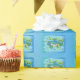 Den pappra inslagningen tonas från blå grönt till djupare blå med en upprepad bild av ram med en sjöfågel tittar drake inslagen i grönt sjögräs med vatten bubblor.