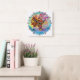 Färgstark, vit, pulserande vattenfärgsmålning i akvblått, turkvas, teal, röd, guld gult, rosa, fuchsia färg ,guldfolie och silver av Bulgan Lumini (c) 2009 . Kinesiska drakar symboliserar traditionellt potenta och välgörande krafter, särskilt regn,vatten. Dronen är också en symbol för makt, styrka och lycka till, odödlighet och hjältemod.