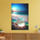 Magical beach scene with sea glass, sand and gently rolling in waves on stretched canvas.