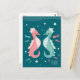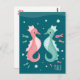 "Sea Horse Maui" vykort med en illustration av två älskliga sjöhästar som bara flyter med bubblor och fiskar i Maui, Hawaiis hav.