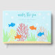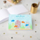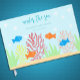 Barn som duschar under havets livstid med orange och blåa fiskar som leker bland en sandrev av korall och sjögräs, bland havsbubblor.