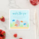 Barn som duschar under havets livstid med orange och blåa fiskar som leker bland en sandrev av korall och sjögräs, bland havsbubblor.
