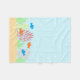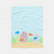 Havsliv med orange och blåa fiskar som leker bland en sandrev av korall och sjögräs, bland havsbubblor.