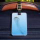 En vattenfärgsmålning av en maneter, med en färglös överdel, i det stora, öppna, blå havet. Copyright ©2017 Kimberly J Tilley.