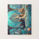 This captivating "Oceanic Majesty: The Regal Sea Princess in Her Coral Throne Room Surrounded by Underwater Wonders" jigsaw puzzle transports you to an enchanting underwater world where a regal sea princess reigns from her coral throne. Her shimmering gown sparkles like the ocean waves, cascading to the floor adorned with pearls and aquatic jewels. The throne room, with its intricately designed coral pillars and golden accents, is a testament to the harmony of beauty and strength found beneath the sea. Surrounding her, vibrant marine life—seahorses, jellyfish, and exotic fish—create a lively yet serene scene, while treasure chests overflowing with gold and jewels add a sense of mystery and adventure. This piece symbolizes the wonders of the ocean, blending majesty with the ethereal charm of the deep.